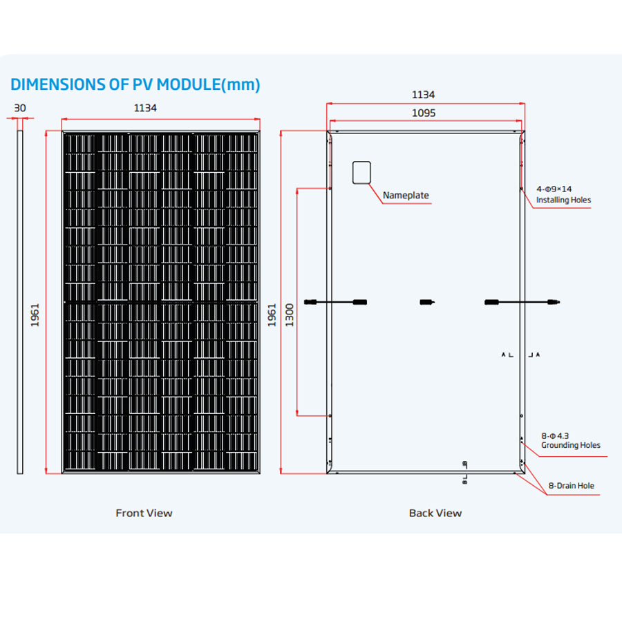 | Front Glass | 1.6 mm, High Transmission, AR Coated Heat Strengthened Glass |